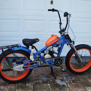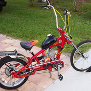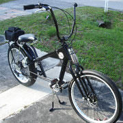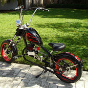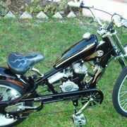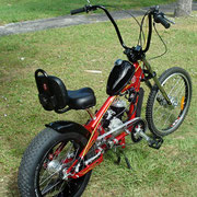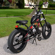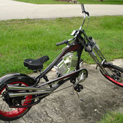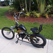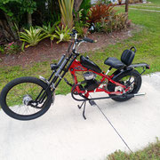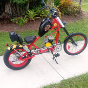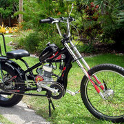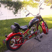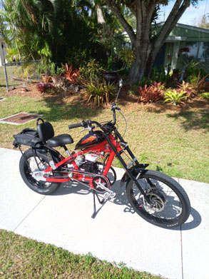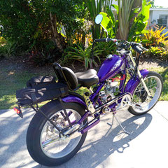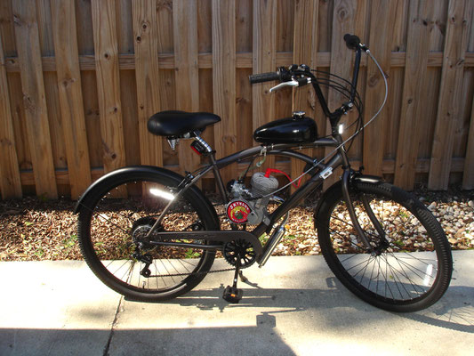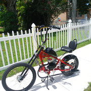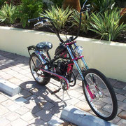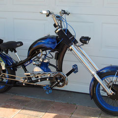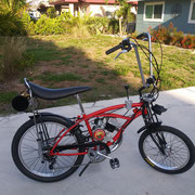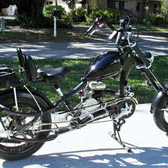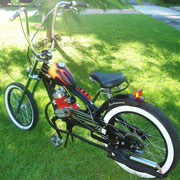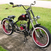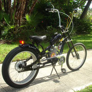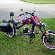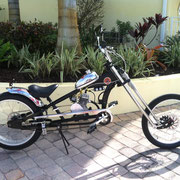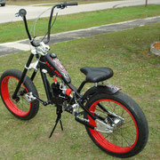 These bikes have all been sold already. This Gallery is here to give you ideas of what we can do if you are interested in having us build you a Motorized Bicycle. In most cases we can build a duplicate unit as pictured here or something very similar. Customer spec. builds start around $2,400.00 Feel Free to contact us with inquiries. Custom paint schemes NOW AVAILABLE! CLICK HERE FOR MORE DETAILED EXPLANATION OF AVAILABLE COMPONENTS